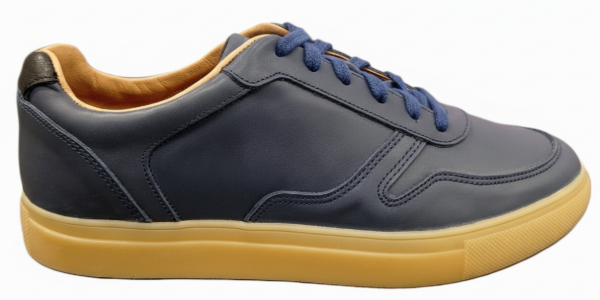 La Mocassino Pocolo en su versión azul es una zapatilla urbana fabricada en cuero vacuno liso suave, con cordones en el mismo tono. Tiene un diseño clásico con suela de goma beige texturizada, que brinda comodidad y una combinación peculiar con el azul. Presenta un estilo versátil que aporta un toque distintivo a cualquier look casual.